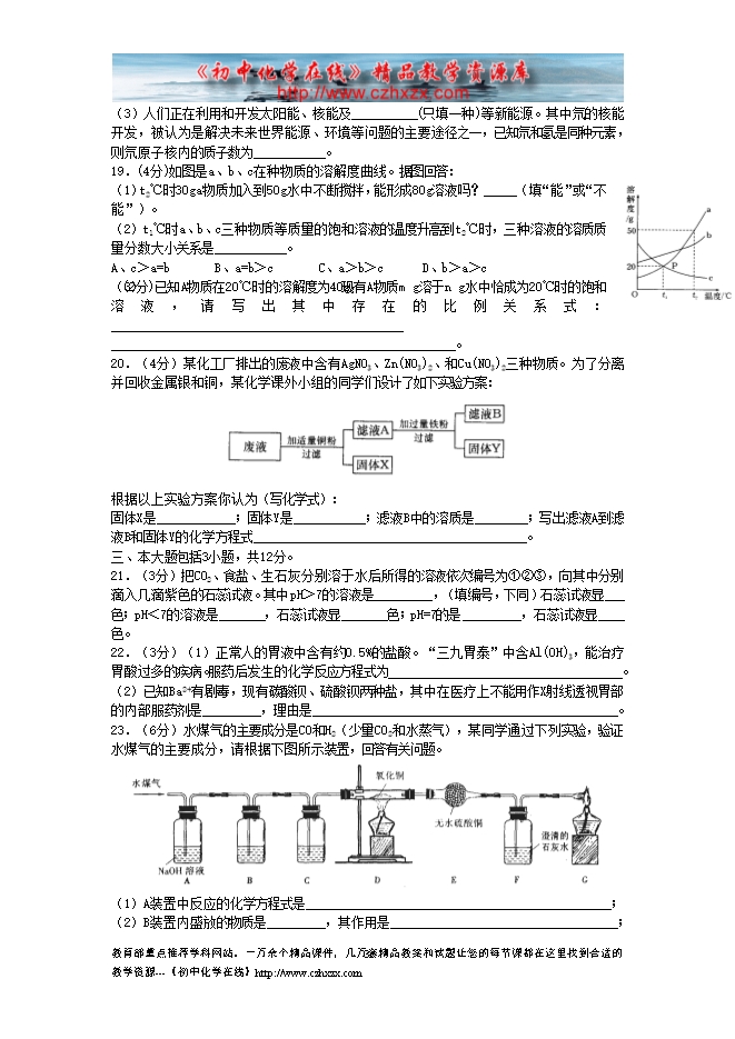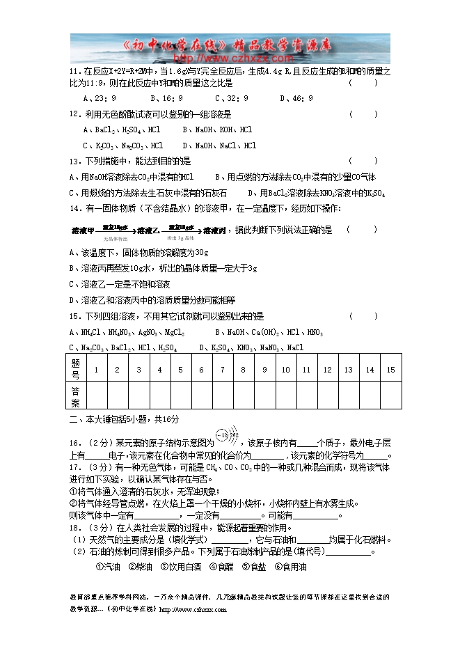 - 下一份试卷:2012中考化学模拟试题及答案(六)