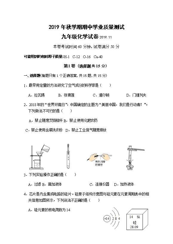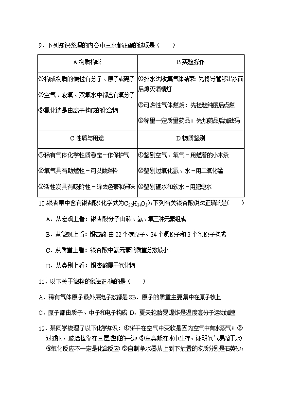 所属专辑: 《2020届全国各地九年级上学期期中考试化学试题汇总》专辑