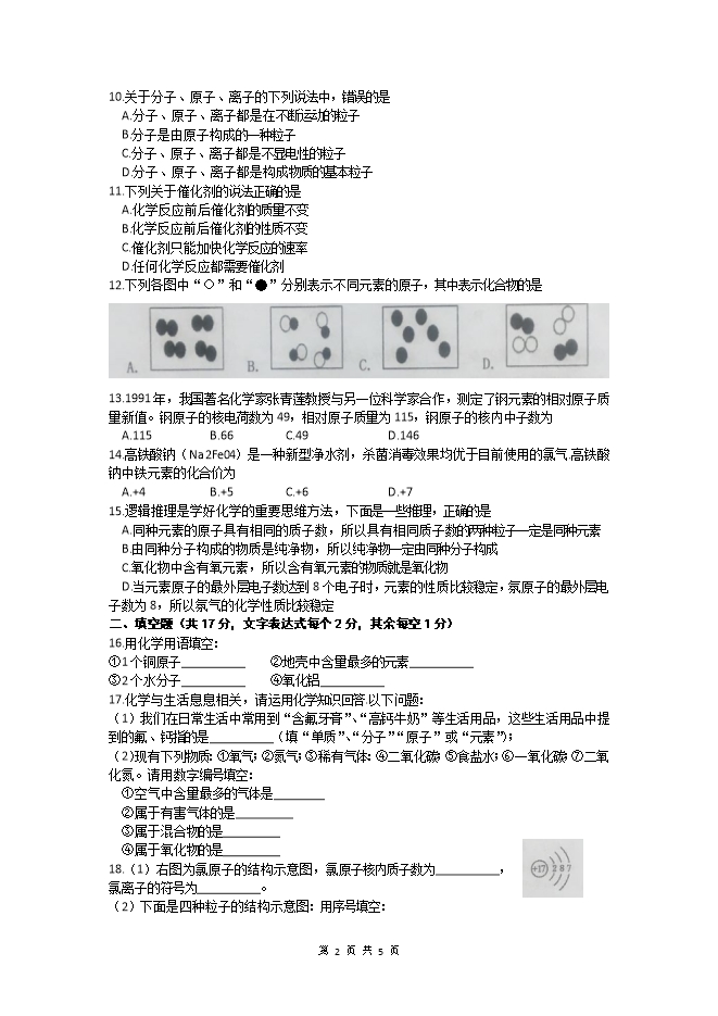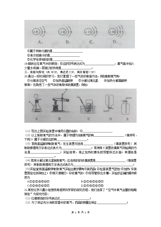所属专辑: 《2020届全国各地九年级上学期期中考试化学试题汇总》专辑