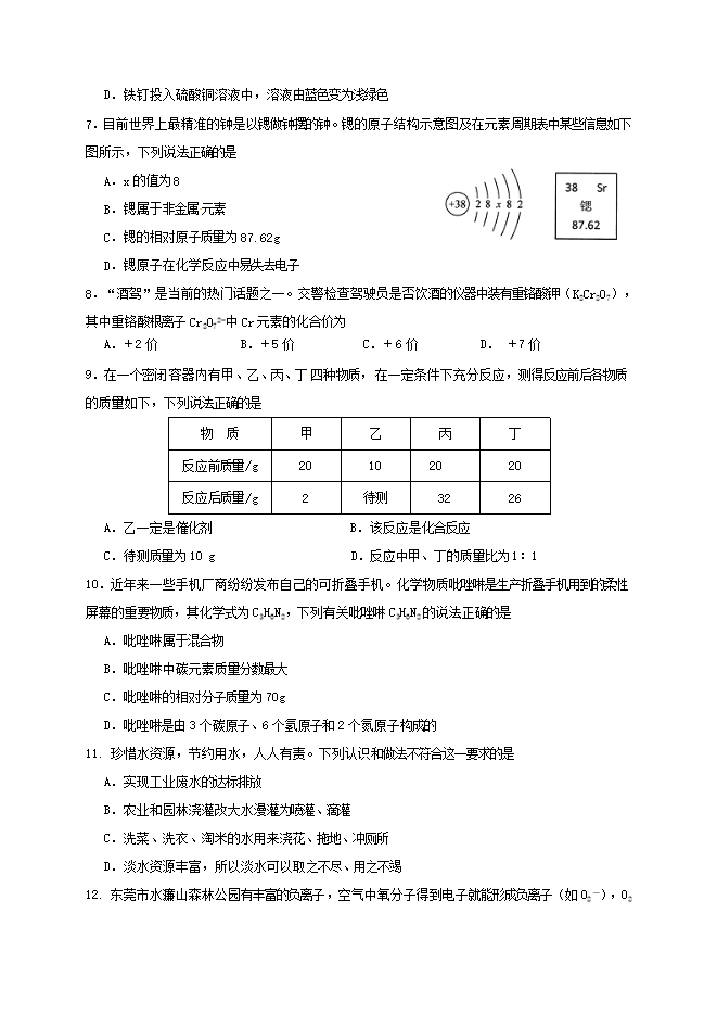 所属专辑: 《2020届全国各地九年级上学期期中考试化学试题汇总》专辑