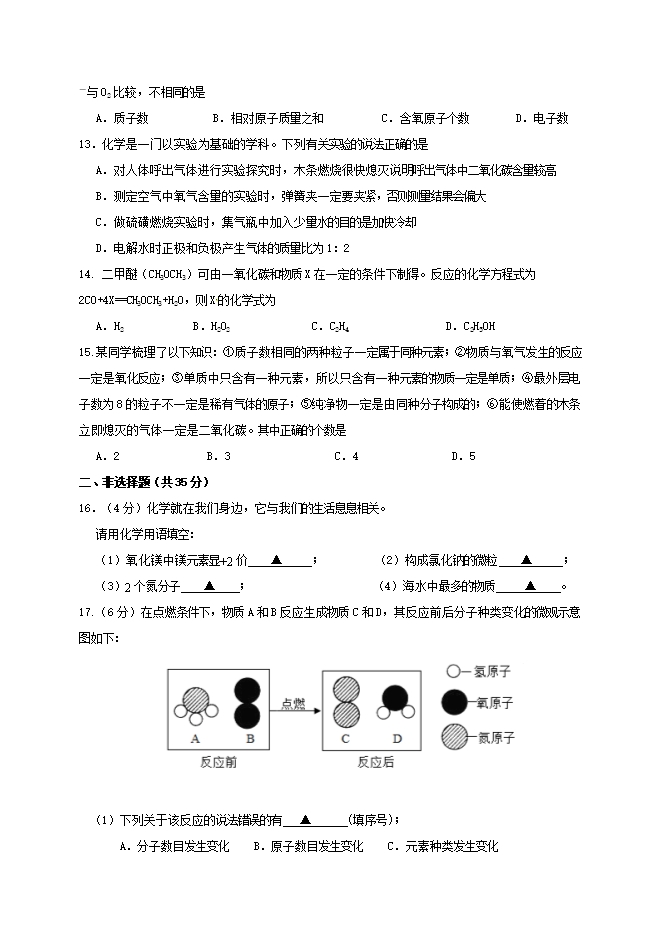 【内容简介】2020届江苏省江阴市第一初级中学、要塞中学九年级上学期期中考试化学试题(word版含答案)