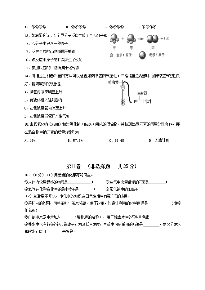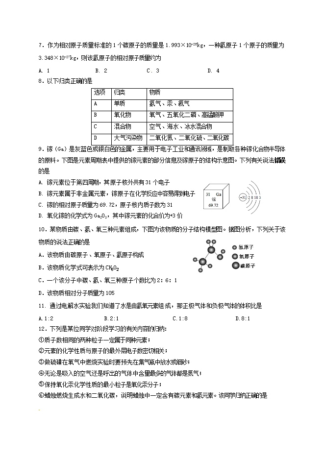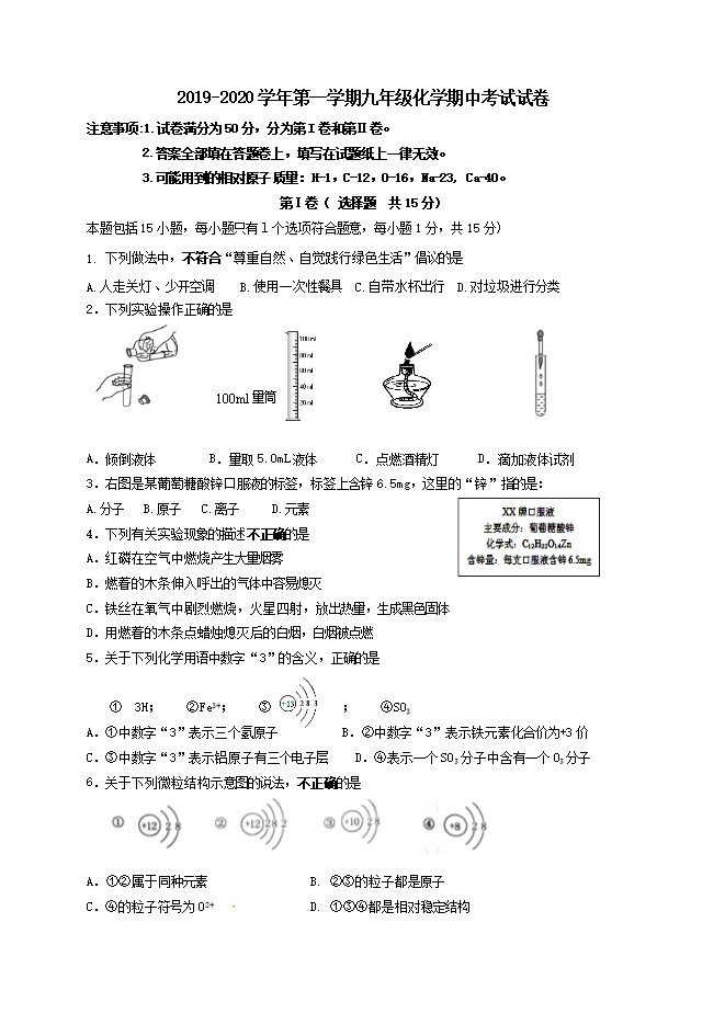 所属专辑: 《2020届全国各地九年级上学期期中考试化学试题汇总》专辑