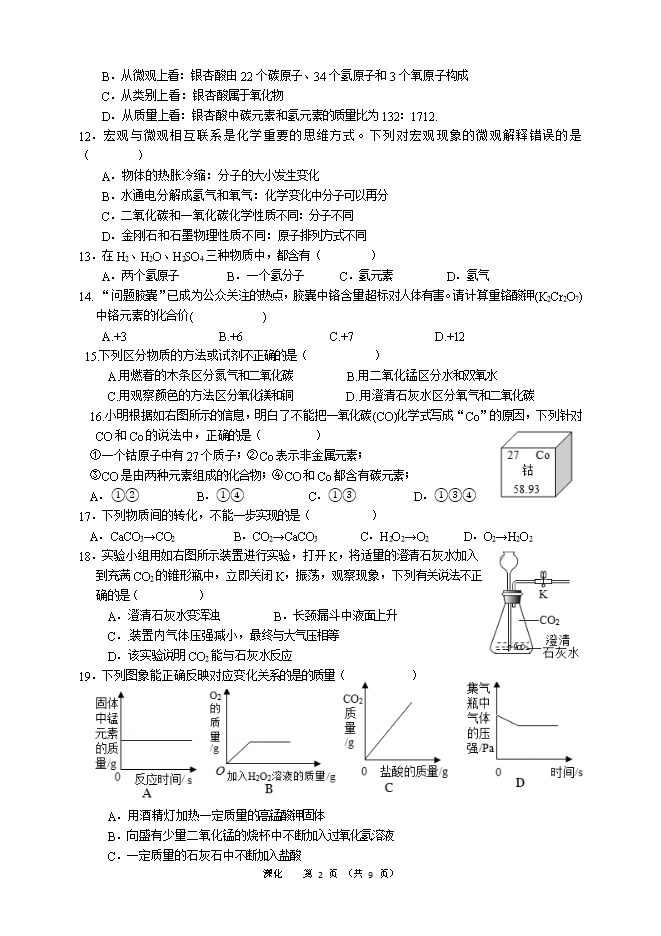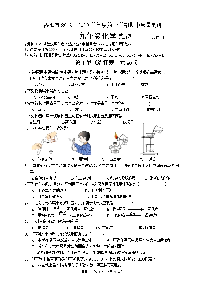 【内容简介】2020届江苏省溧阳市九年级上学期期中化学质量调研试题(word版含答案)