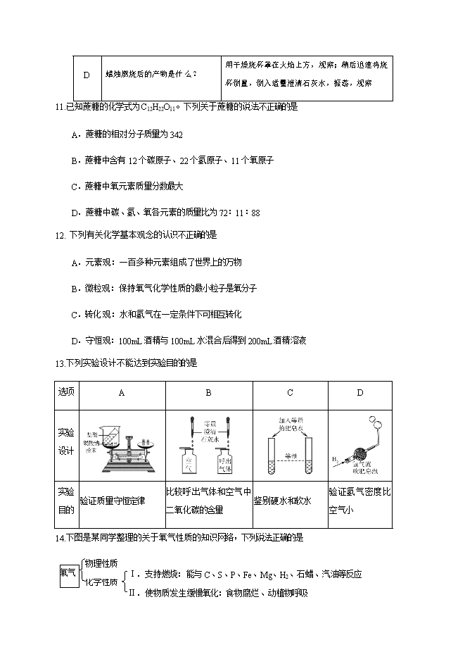 【内容简介】2020届江苏省南京市九年级上学期期中调研测试化学试题(word版含答案)