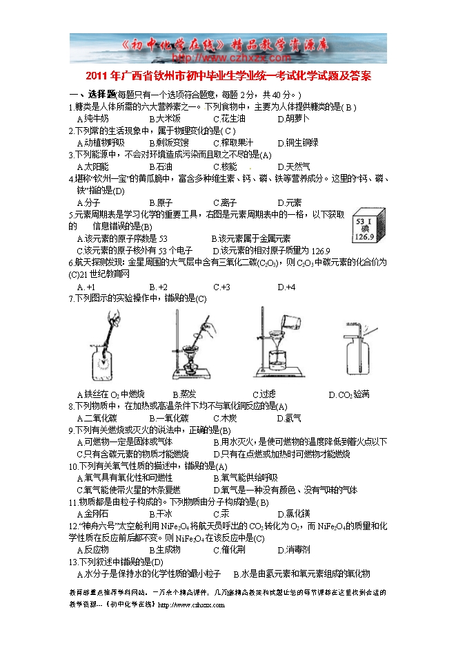 所属专辑: 《2020届全国各地九年级上学期期中考试化学试题汇总》专辑