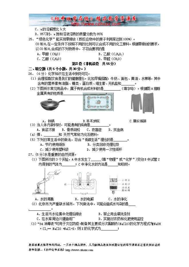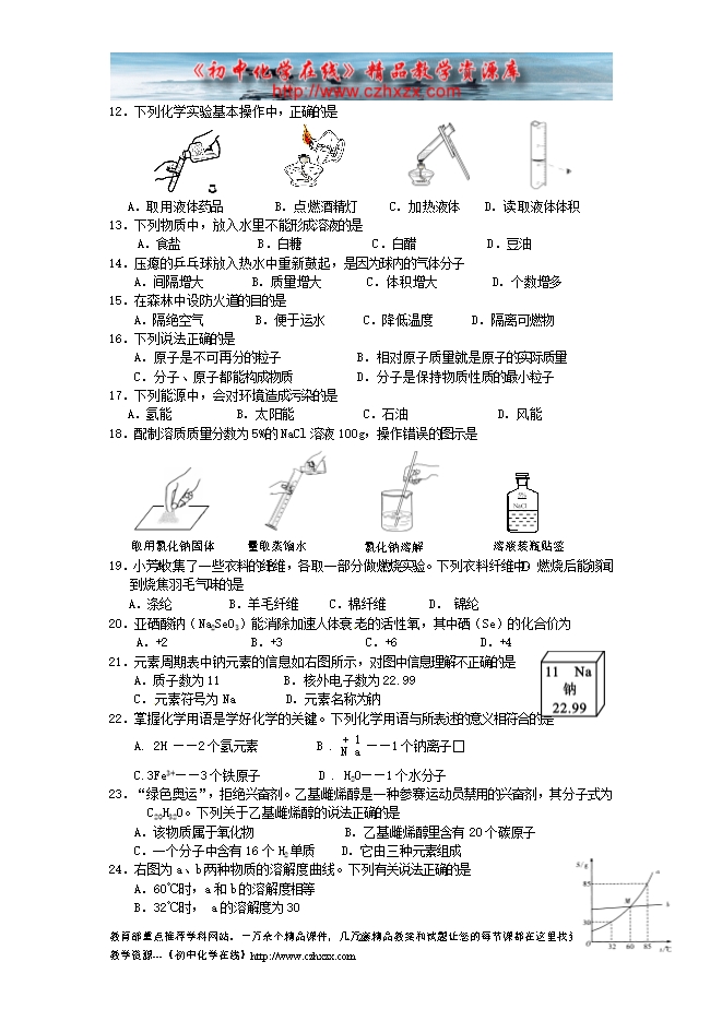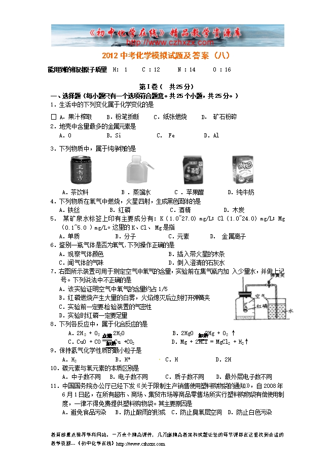 - 下一份试卷:2012中考化学模拟试题及答案(九)