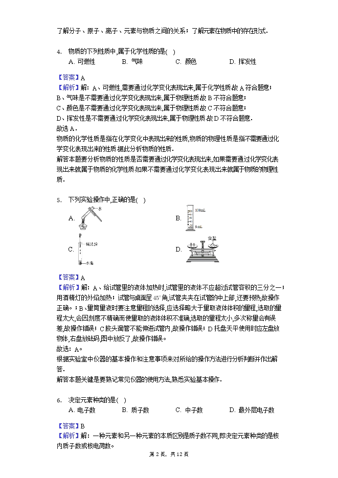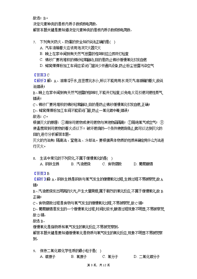 所属专辑: 《2020届全国各地九年级上学期期中考试化学试题汇总》专辑