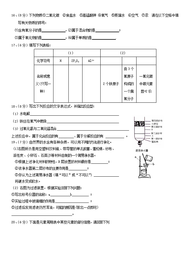所属专辑: 《2020届全国各地九年级上学期期中考试化学试题汇总》专辑
