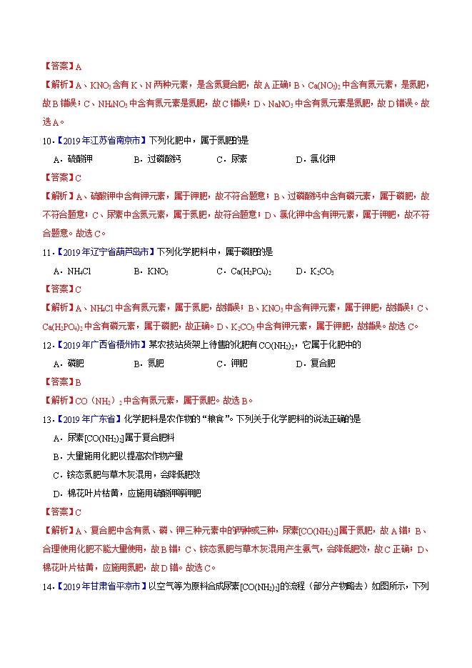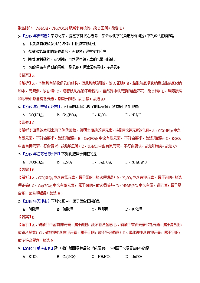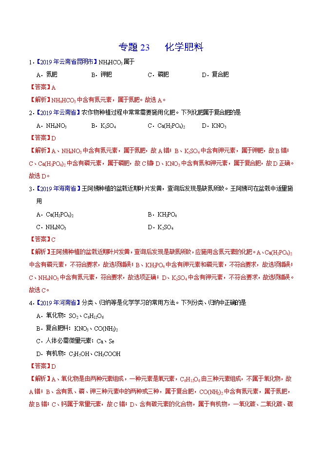 【内容简介】2019年中考真题化学试题汇编专题23 化学肥料(解析版)