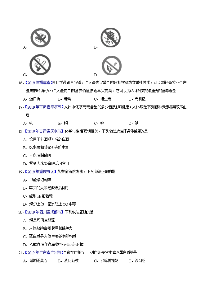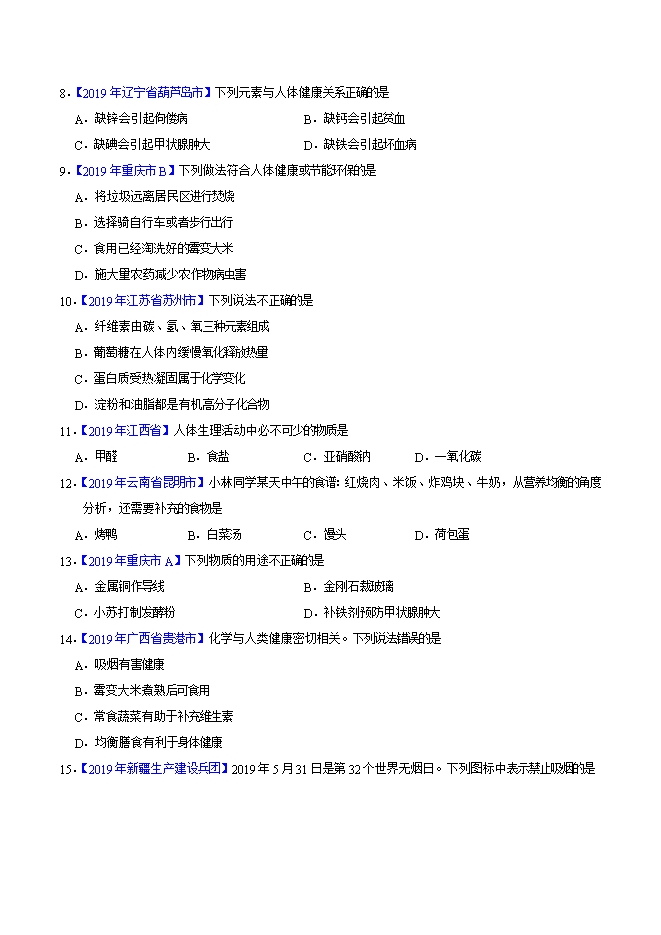2019年中考真题化学试题汇编专题25 化学与人体健康(原卷版)