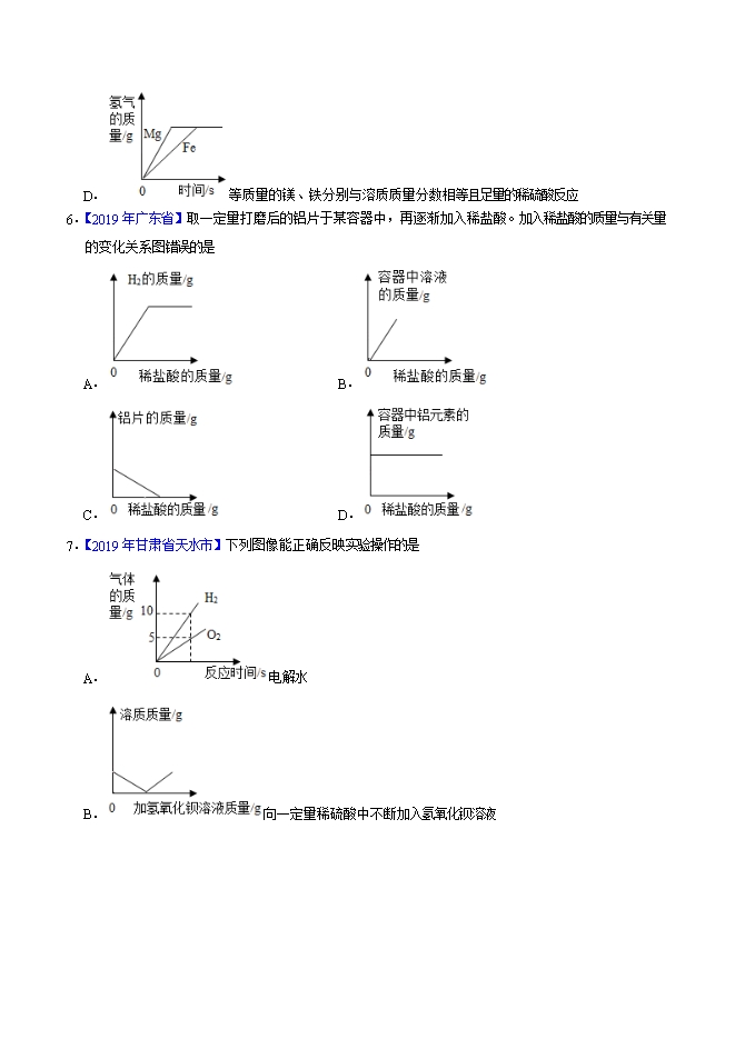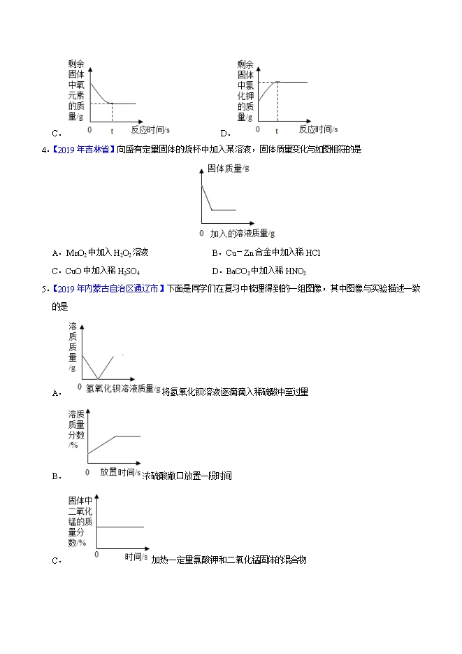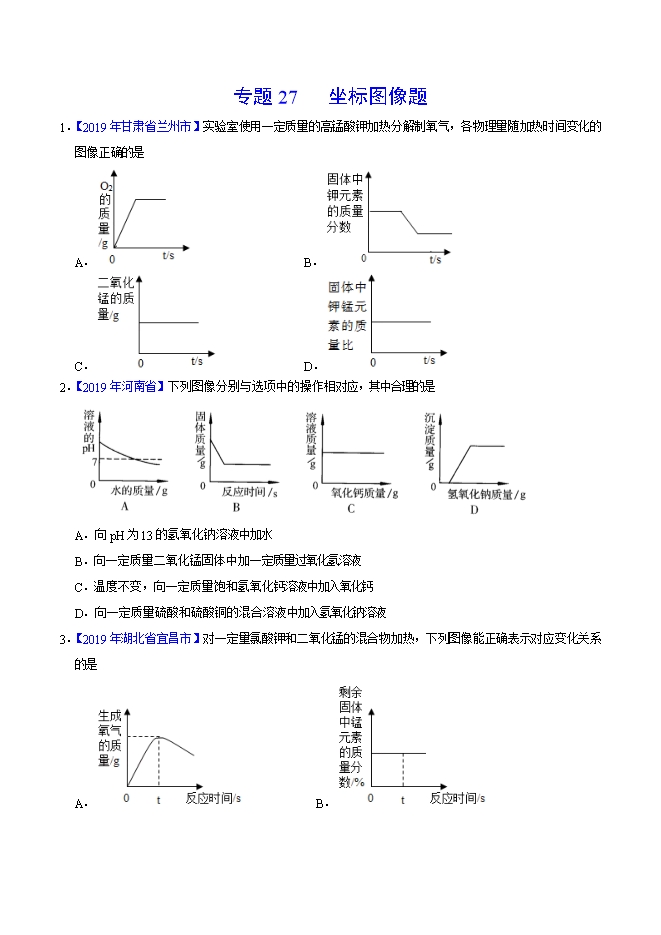 【内容简介】2019年中考真题化学试题汇编专题27 坐标图像题(原卷版)
