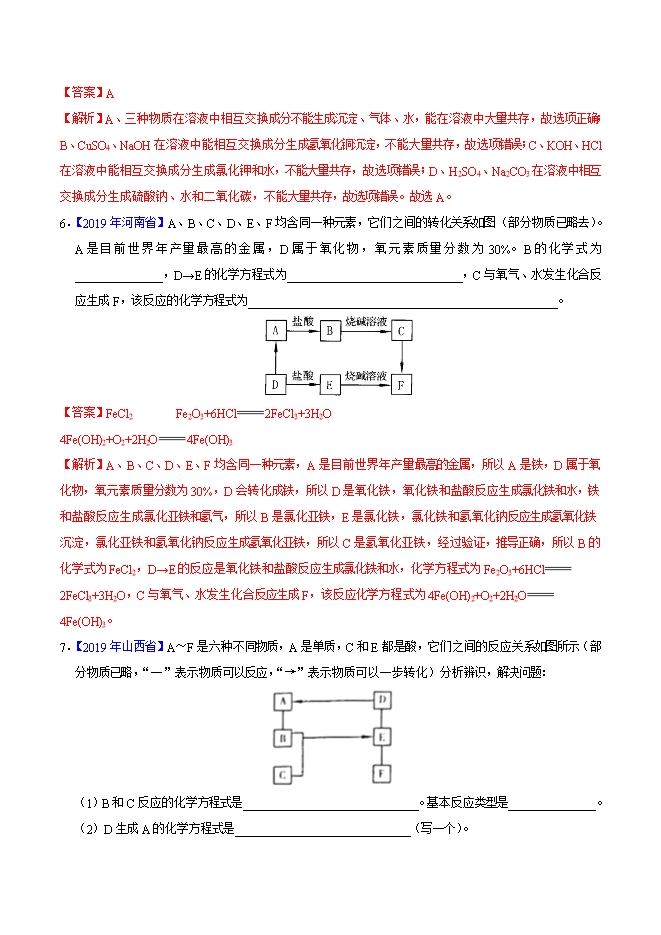 2019年中考真题化学试题汇编专题30 物质的推断(解析版)