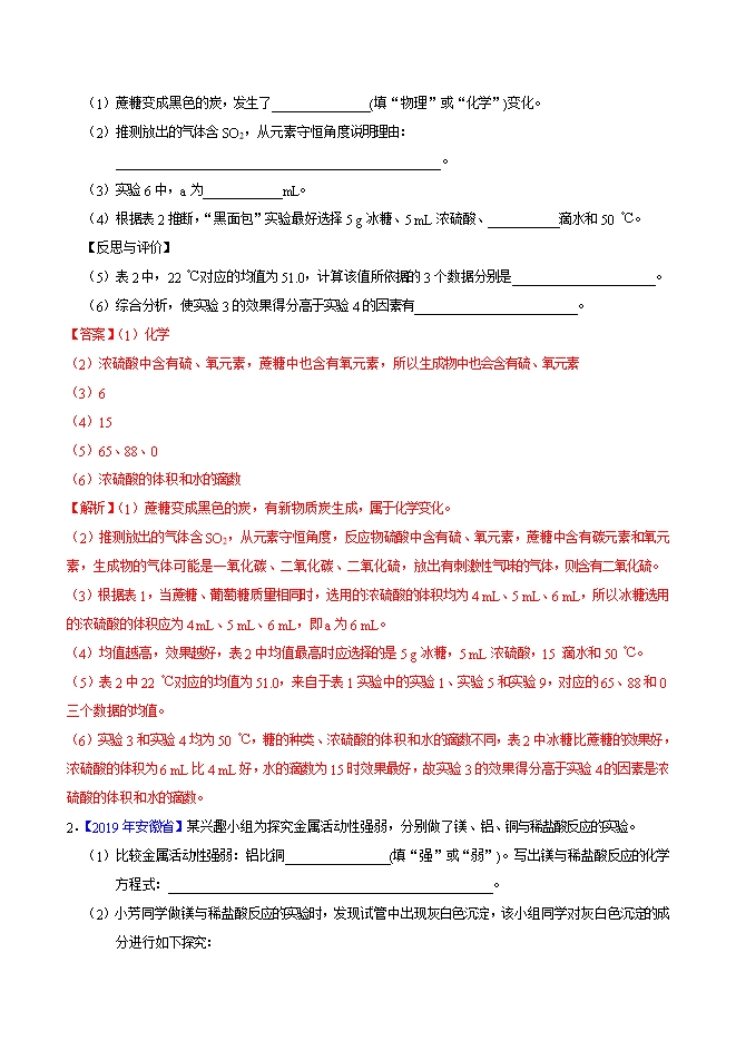 【内容简介】2019年中考真题化学试题汇编专题31 科学探究(解析版)