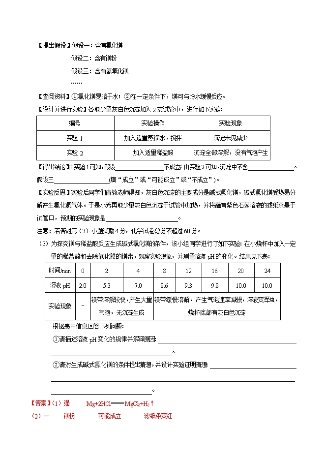 2019年中考真题化学试题汇编专题31 科学探究(解析版)