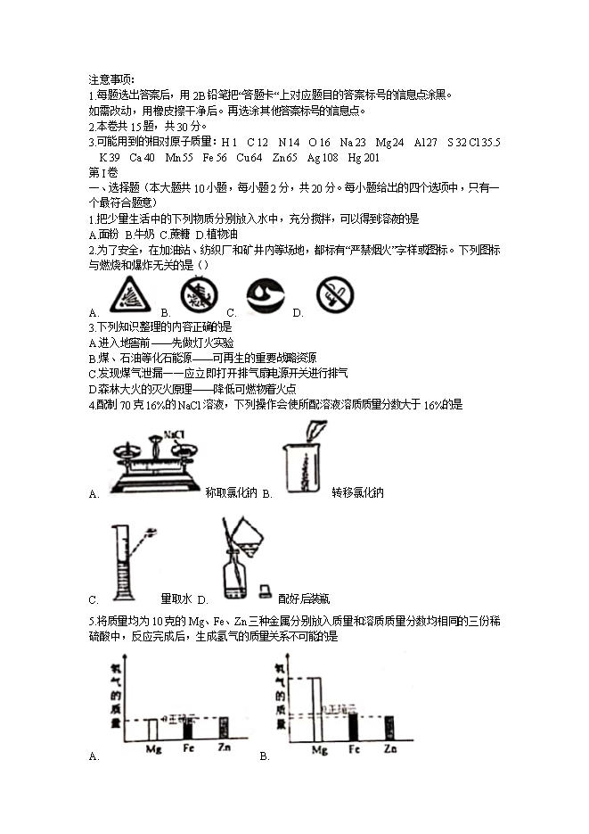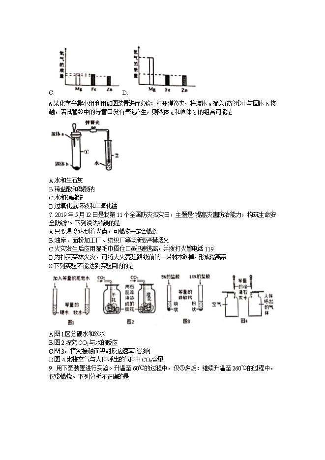 2020届天津市和平区九年级上学期期末考试化学试题(word版含答案)
