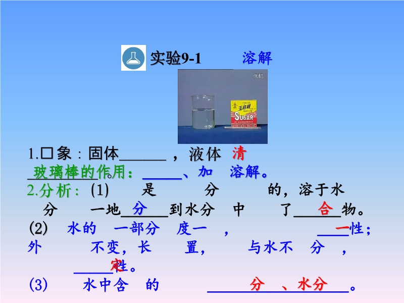- 711人教版九年级下册《课题9.1 溶液的形成(第一课时)》课堂实录