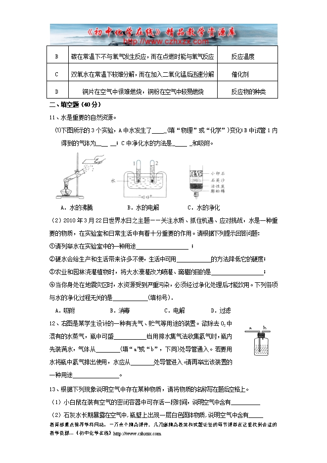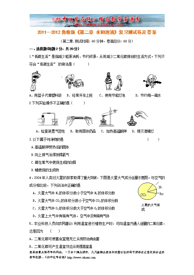 2011—2012鲁教版《第三章 水和溶液》复习测试卷及答案