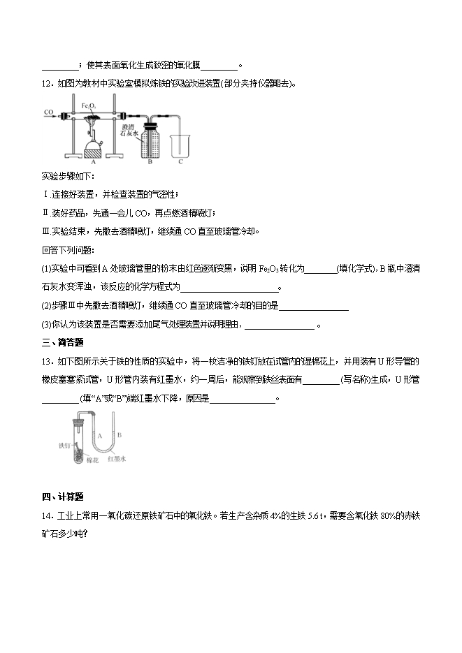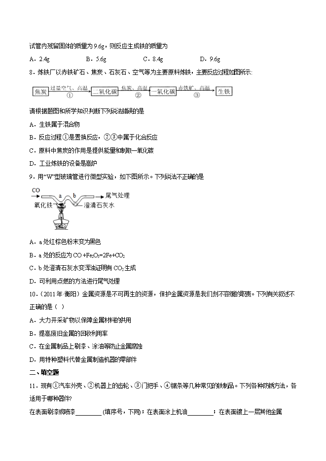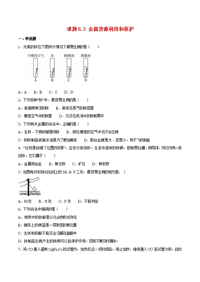 2019-2020学年人教版九年级化学下册《课题8.3金属资源利用和保护》同步练习(原卷版)