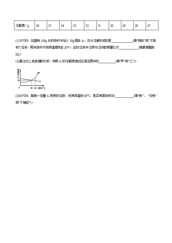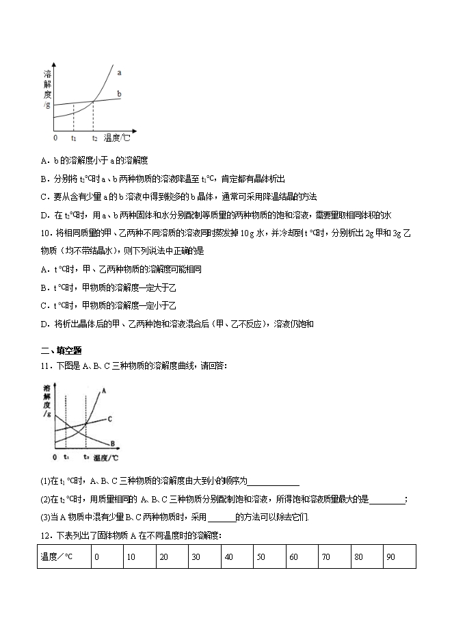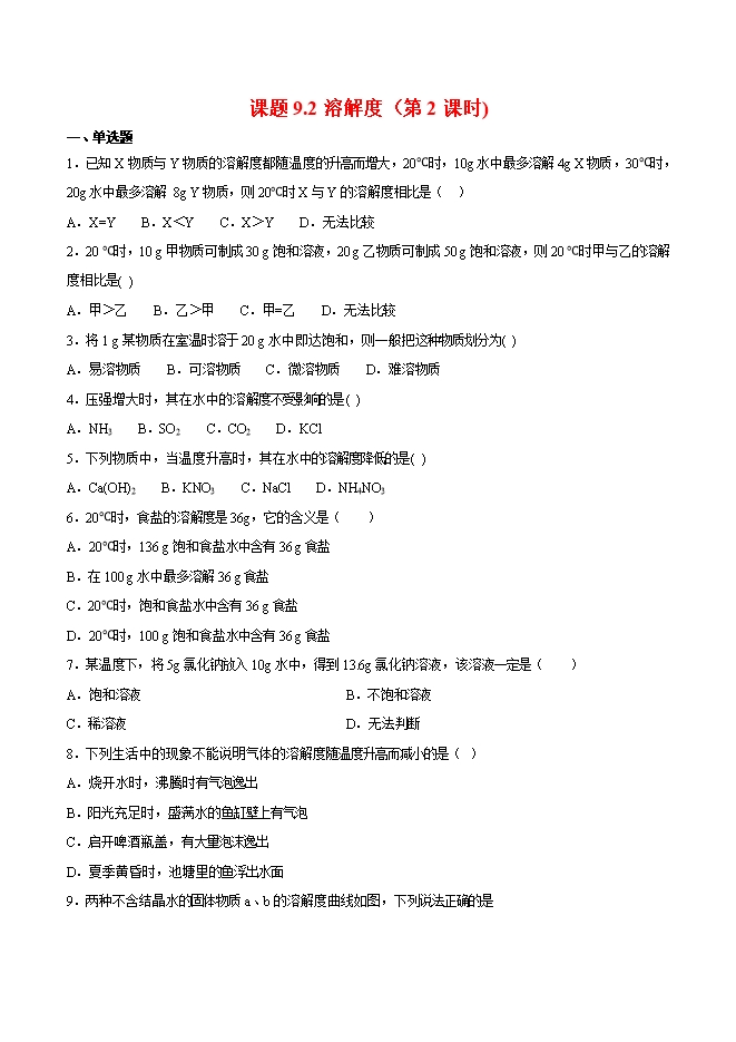 【内容简介】2019-2020学年人教版九年级化学下册《课题9. 2 溶解度(第2课时)》同步练习(原卷版)