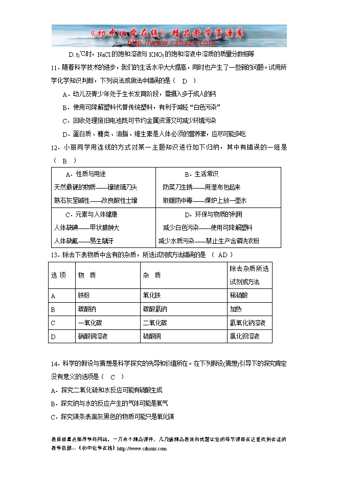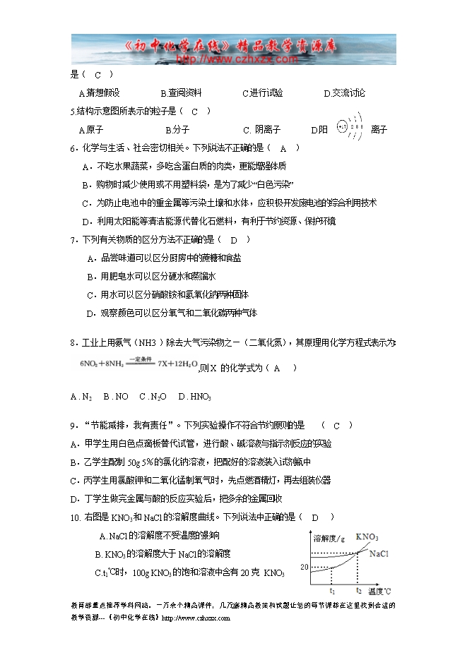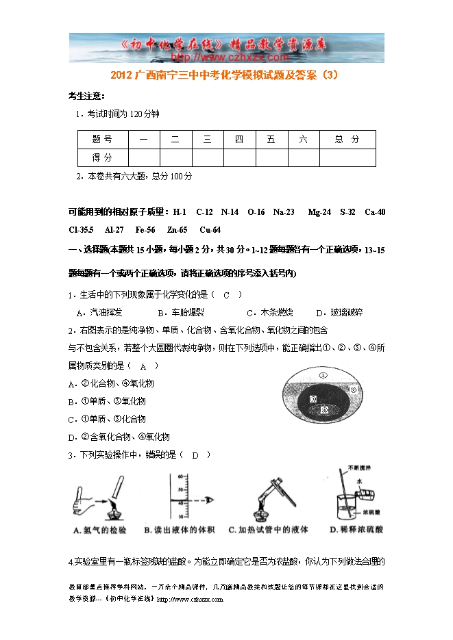 2012年广西南宁三中中考化学模拟试题及答案(3)