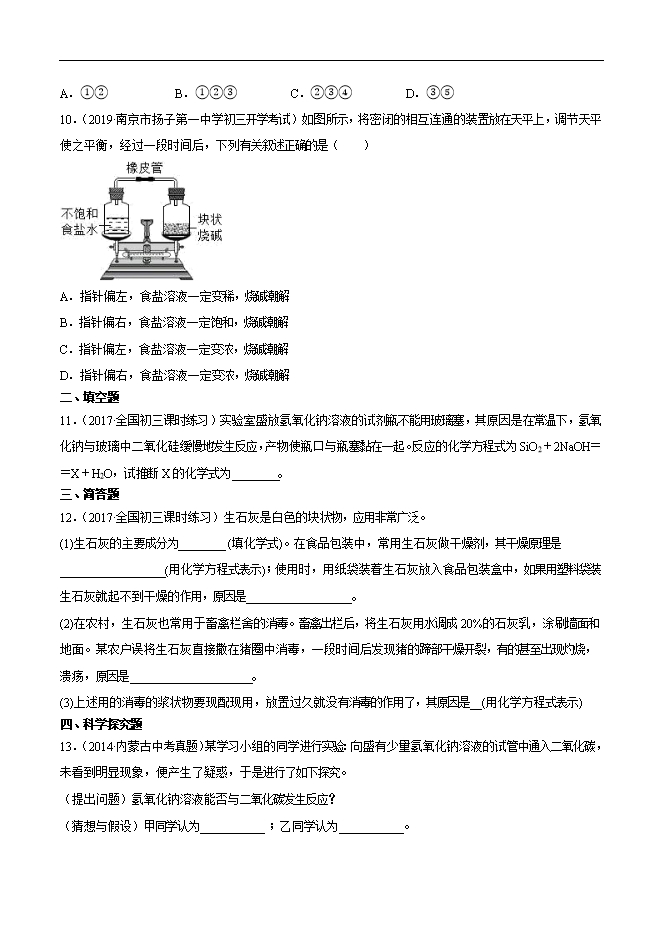 2019-2020学年人教版九年级化学下册《课题10.1常见的酸和碱(第3课时)》同步练习(原卷版)