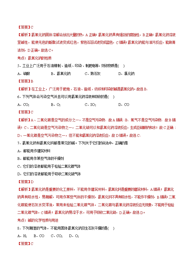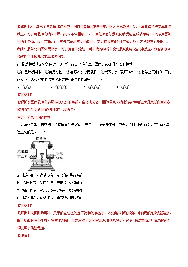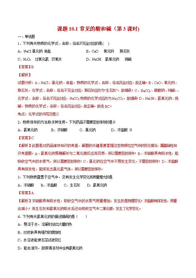 【内容简介】2019-2020学年人教版九年级化学下册《课题10.1常见的酸和碱(第3课时)》同步练习(解析版)