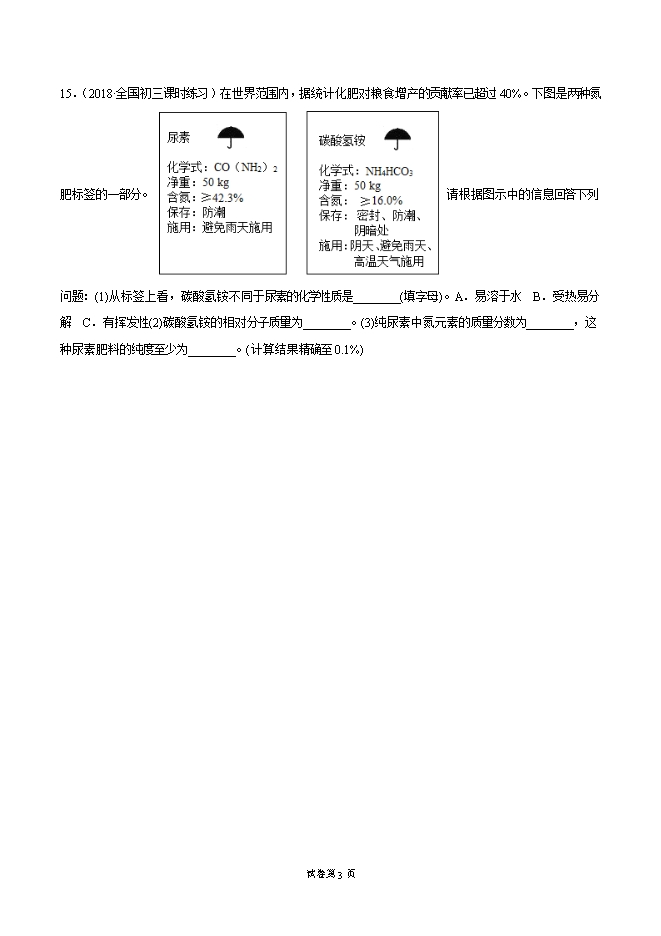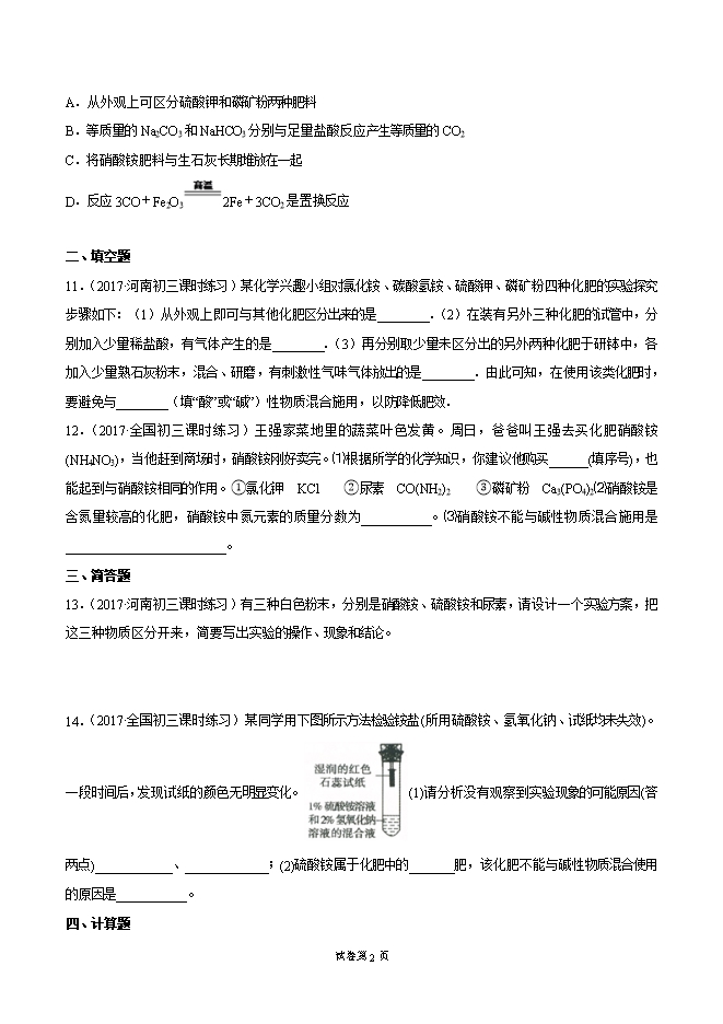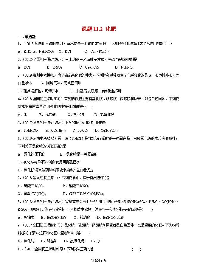 2019-2020学年人教版九年级化学下册《课题11.2 化学肥料》同步练习(原卷版)
