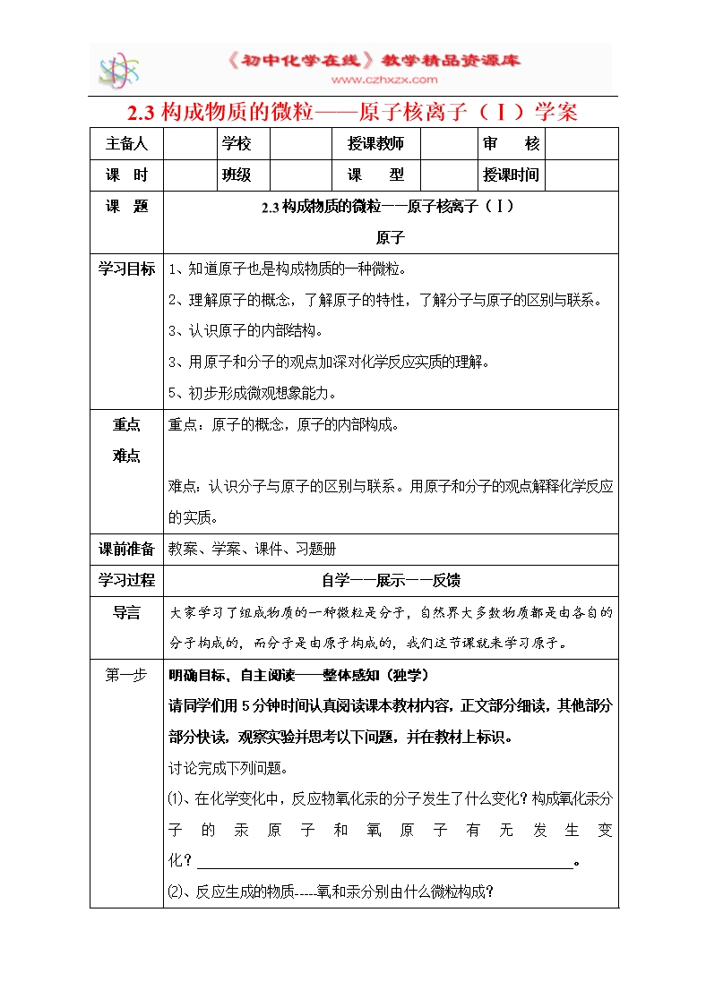 【内容简介】科粤版九年级化学上册《2.3构成物质的微粒(2)—原子和离子》同步学案(word版无答案)