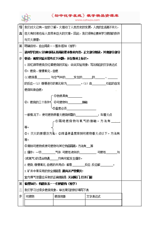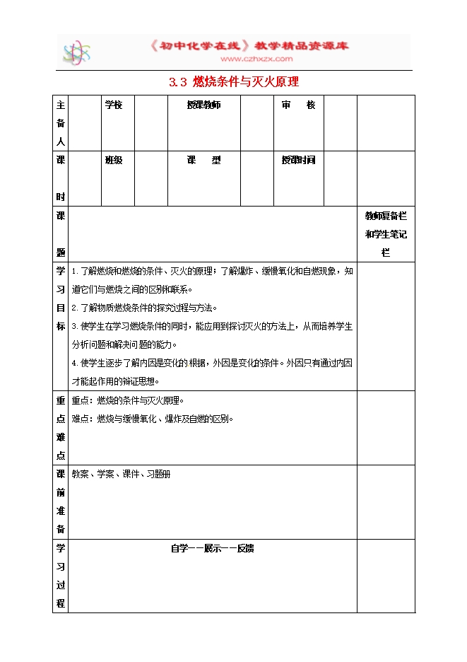 【内容简介】科粤版九年级化学上册《3.3燃烧条件与灭火原理》同步学案(word版无答案)