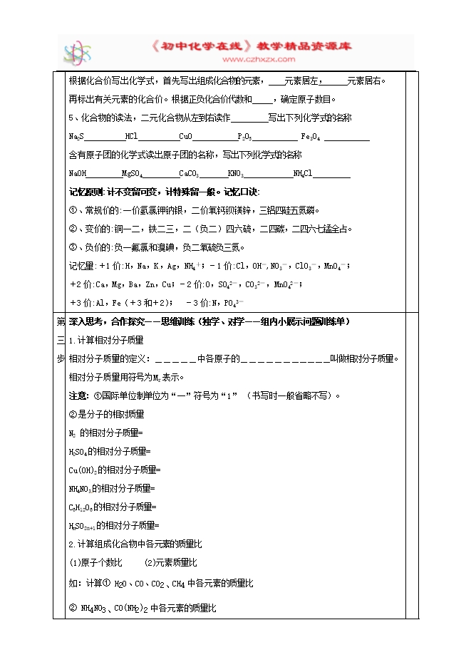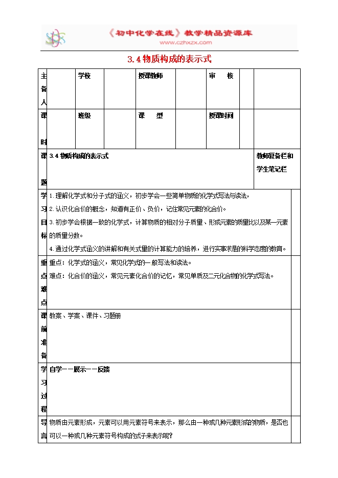【内容简介】科粤版九年级化学上册《3.4物质构成的表示式》同步学案(word版无答案)