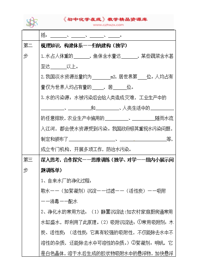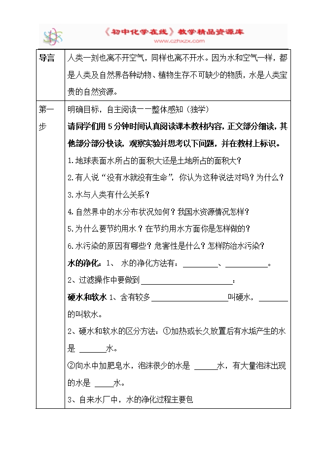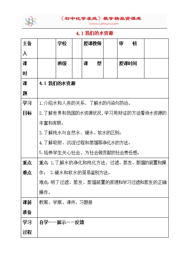 【内容简介】科粤版九年级化学上册《4.1我们的水资源》同步导学案(word版无答案)