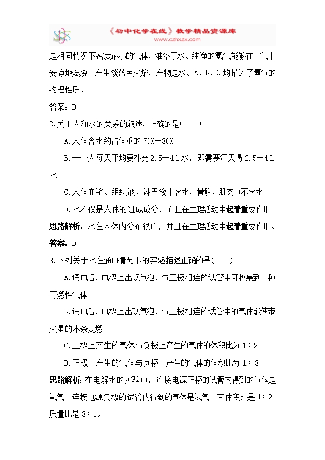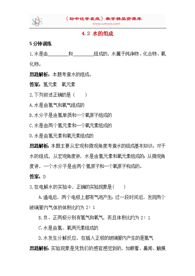【内容简介】科粤版九年级化学上册《4.2 水的组成》同步学案(word版含答案解析)