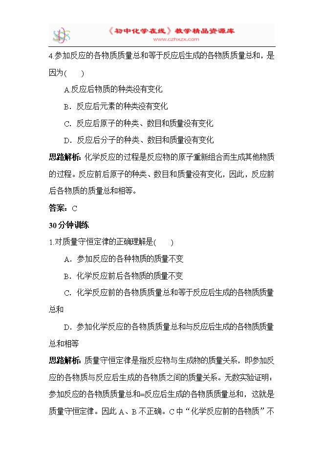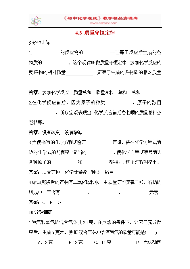 【内容简介】科粤版九年级化学上册《4.3 质量守恒定律》同步学案(word版含答案解析)