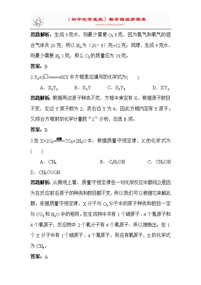 科粤版九年级化学上册《4.3 质量守恒定律》同步学案(word版含答案解析)