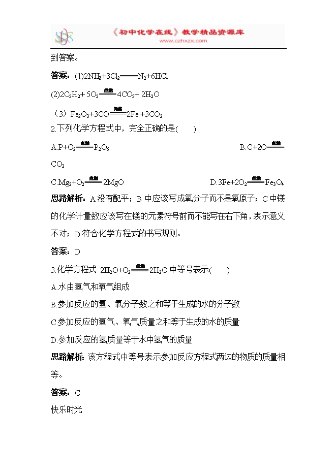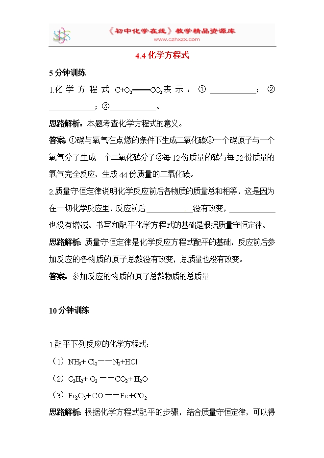 【内容简介】科粤版九年级化学上册《4.4化学方程式》同步学案(word版含答案解析)