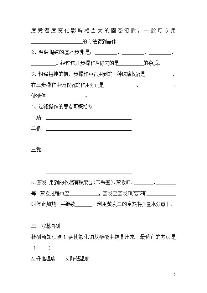 【内容简介】科粤版九年级化学下册《7.4结晶现象》同步学案(word版无答案)