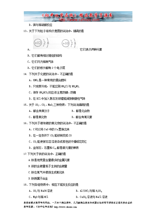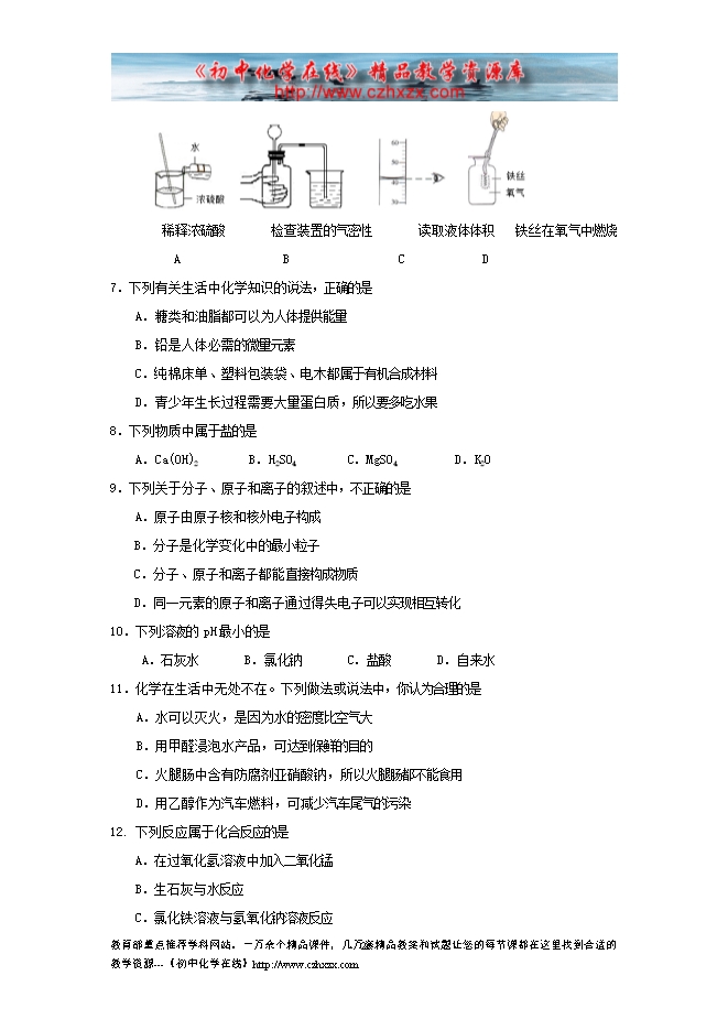 - 下一份试卷:2012年广东省广州市花都区中考化学模拟试卷及答案