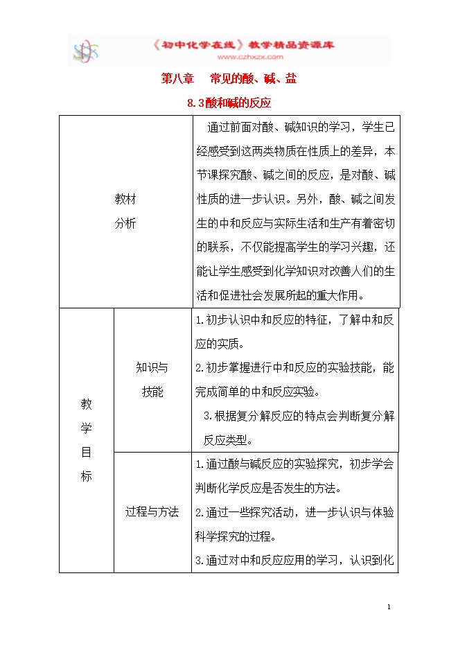 【内容简介】科粤版九年级化学下册《8.3酸和碱的反应》同步导学案(word版无答案)