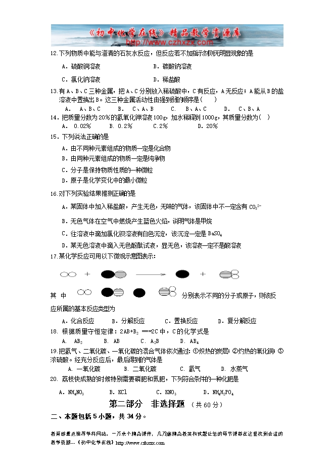 - 下一份试卷:2012年广东省广州市萝岗区中考化学模拟试卷及答案