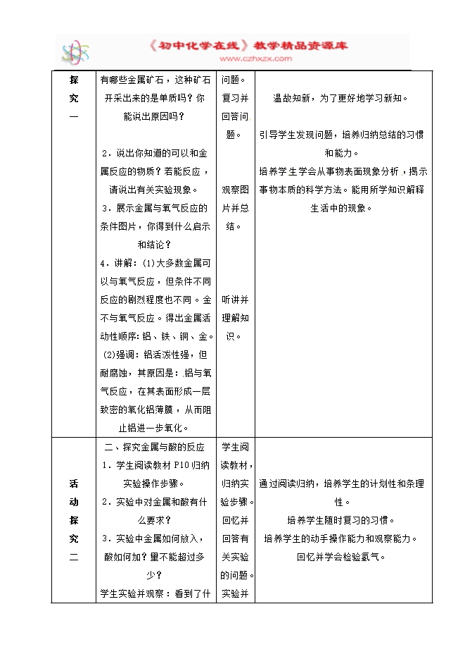 【内容简介】2020年春人教版九年级化学下册《课题8.2金属的化学性质(第1课时)》教学设计
