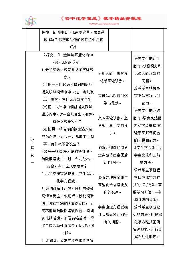 2020年春人教版九年级化学下册《课题8.2 金属的化学性质(第2课时)》教学设计