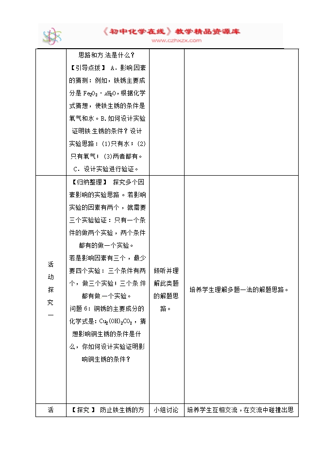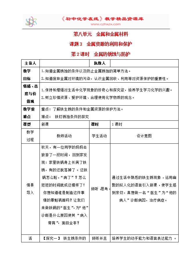 【内容简介】2020年春人教版九年级化学下册《课题8.3金属资源的利用和保护(第2课时)》教学设计