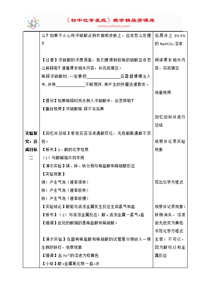 【内容简介】2020年春人教版九年级化学下册《课题10.1常见的酸和碱(第2课时)》教学设计