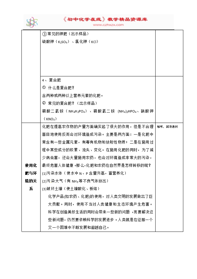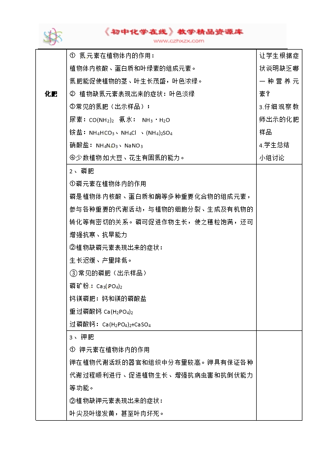 【内容简介】2020年春人教版九年级化学下册《课题11.2化学肥料》教学设计