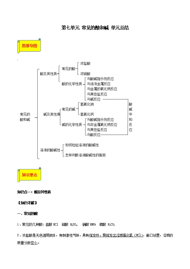 【内容简介】2020年春鲁教版九年级化学下册《第七单元 常见的酸和碱》单元复习教学课件+单元总结