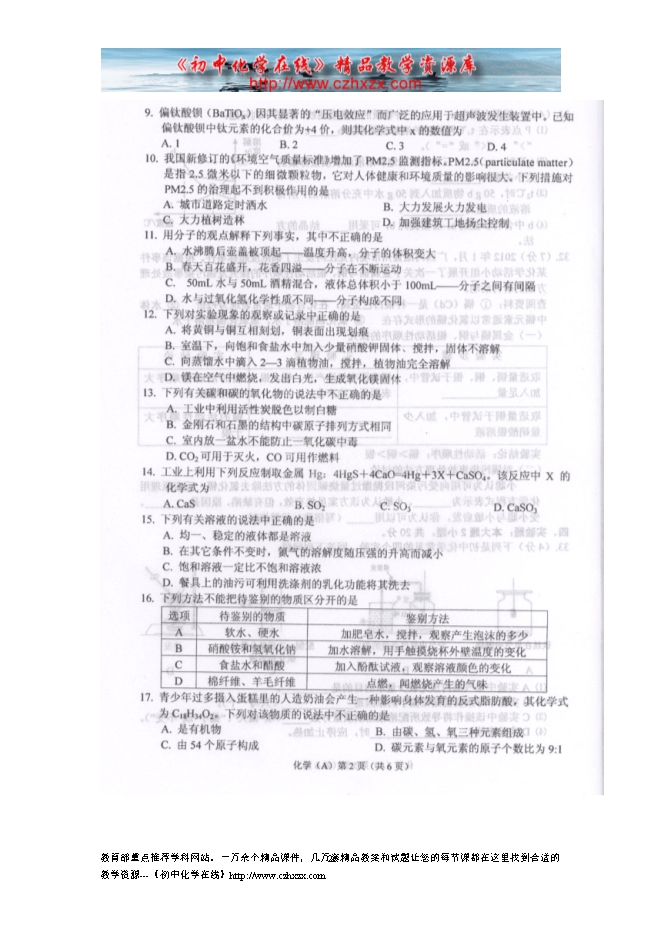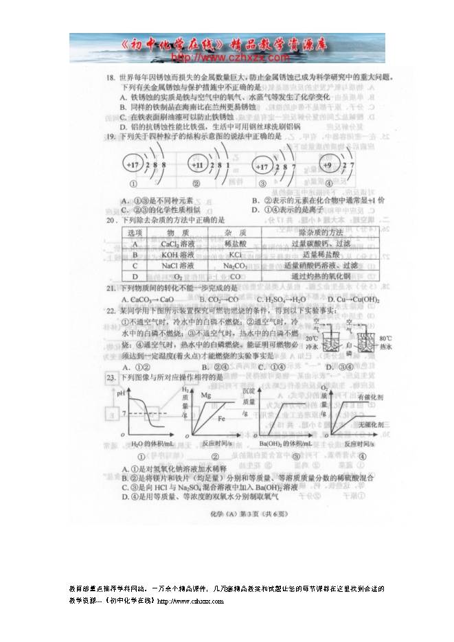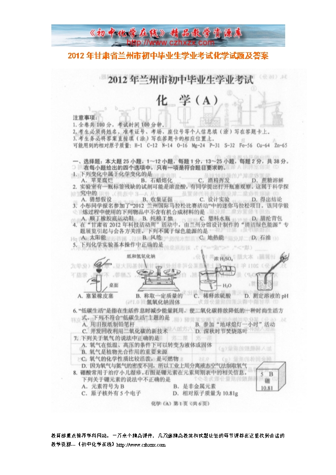 2012年甘肃省兰州市初中毕业生学业考试化学试题及答案