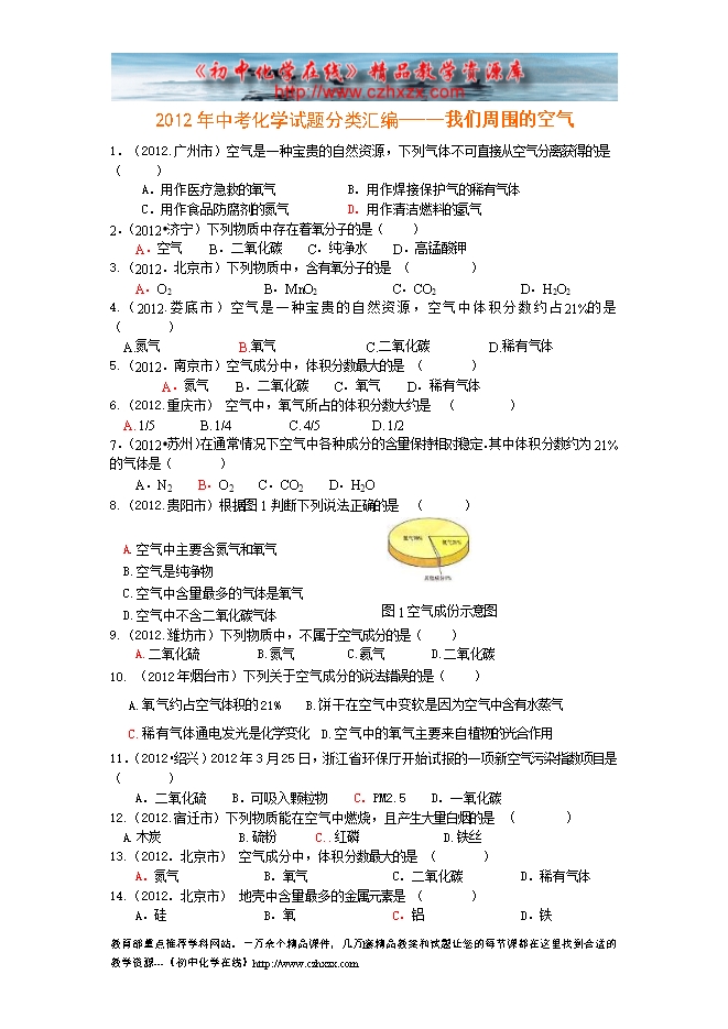 - 上一份试卷:2012年中考化学试题分类汇编—---走进化学世界