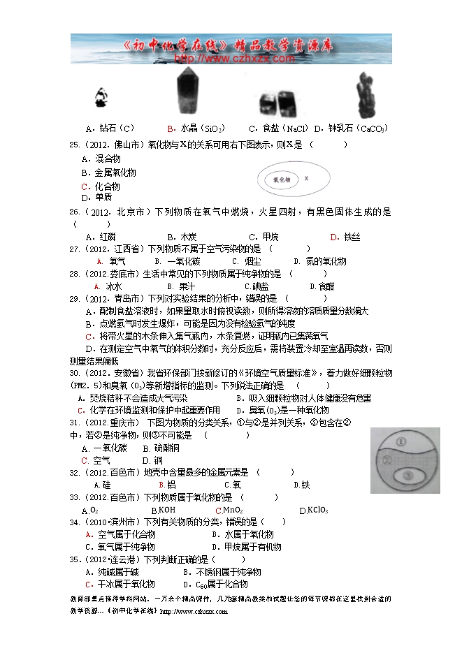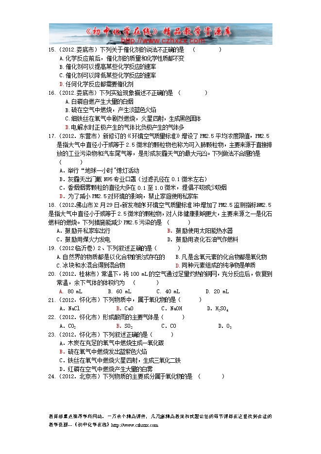 - 下一份试卷:2012年中考化学试题分类汇编—---自然界中的水