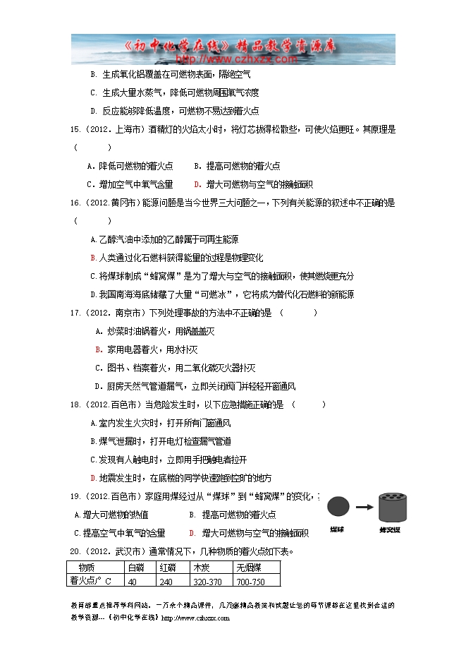 2012年中考化学试题分类汇编—---燃烧及其利用