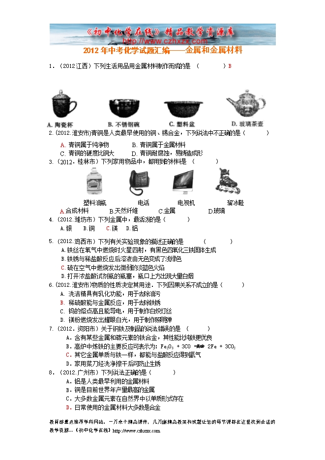 - 上一份试卷:2012年中考化学试题分类汇编—---燃烧及其利用